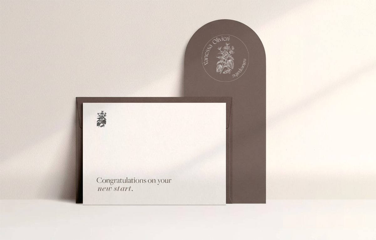Pour Vanessa Olivieri, naturopathe spécialisée en périnatalité, hygiène de vie et nutrition, j’ai imaginé une identité visuelle douce, enveloppante et profondément humaine.